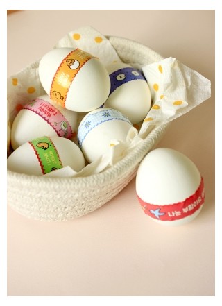 물에 강하고 달걀에 잘 달라붙는 띠 형태의 스티커 / 비닐재질